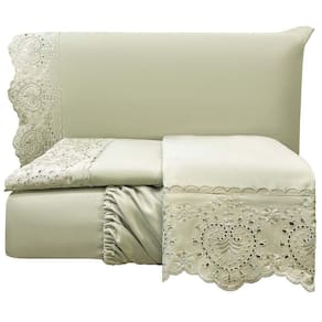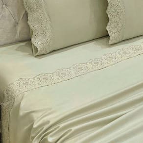 Jogo De Cama Lençol Bella Casal 4 Peças Micropercal 300 Fios Bordado Inglês Macio Bege 100% Poliéster