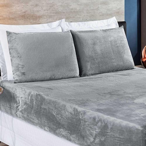 Jogo De Cama Lençol Biasoft Casal Padrão Manta Flannel Toque Extra Macio 03 Peças - Cinza - Única