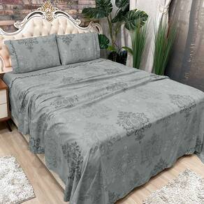 Jogo De Cama Lençol Casal Colonial Percal 300 Fios 4 Peças - Cinza