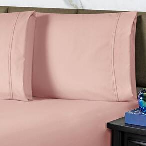 Jogo De Cama Lençol Casal Conforto Percal 300 Fios 3 Peças - Rosê - Blush