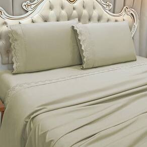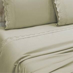 Jogo De Cama Lençol Casal Supremo 3 Peças Micropercal 300 Fios Bege 100% Poliéster