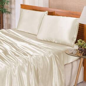 Contém um lençol de baixo com elástico, um lençol de cima e duas fronhas.