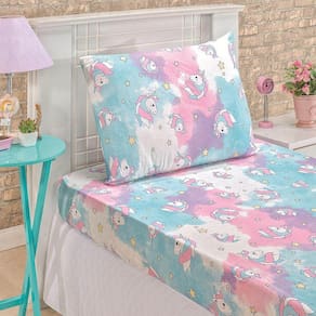 O Jogo Cama Fantasy é confeccionado com malha 100% algodão fio 30/1, o tecido oferece refrescância e delicadeza para o ambiente. A linda composição de cores traz elagância e equilibrio.