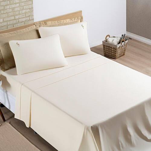 Jogo De Cama Lençol Joana Casal King Tecido Algodão 200 Fios 04 Peças - Palha - Única