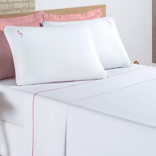 Jogo De Cama Lençol Joana Casal Padrão Tecido Algodão 200 Fios 04 Peças - Branco