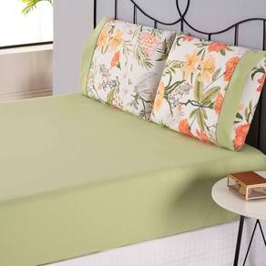 Jogo De Cama Lençol King California 3 Peças Verde 80% Algodão 20% Poliéster
