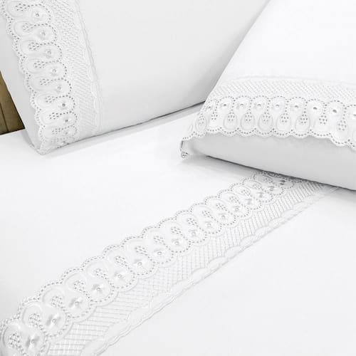 Jogo de Cama Lençol King D Mais 4 Peças - Branco - 100% Poliéster