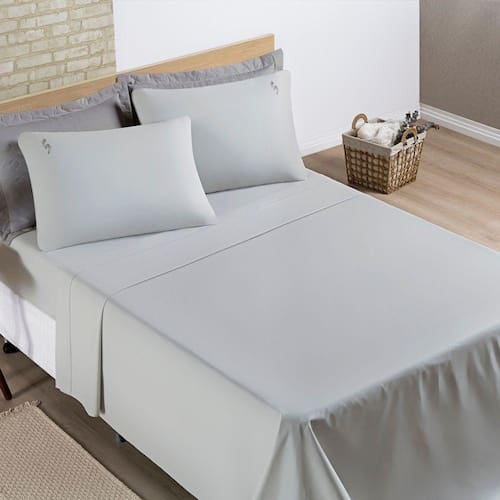 Jogo De Cama Lençol Percal 200 Fios 100% Algodão Bordado Liana Casal Padrão 04 Peças - Cinza O Jogo de Cama Liana é confeccionado com tecido percal 200 fios 100% algodão, possui lindos detalhes bordados. Produto composto por: 01 Lençol de cima 2,60m x 2,20m01 Lençol de baixo c/ elástico p/ colchão de 1,88m x 1,38m x 30cm alt.02 Fronhas 70cm x 50cm Composição: 100% Algodão Percal 200 Fios Ean: 7908125131186