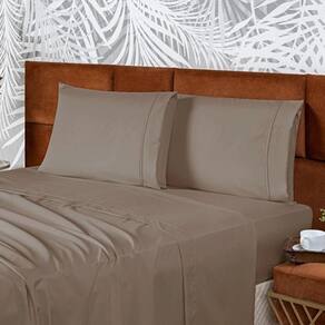 Jogo De Cama Lençol Queen Conforto Percal 300 Fios 4 Peças - Marron