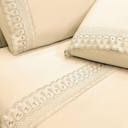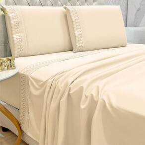 Jogo de Cama Lençol Queen D Mais 4 Peças - Palha - 100% Poliéster