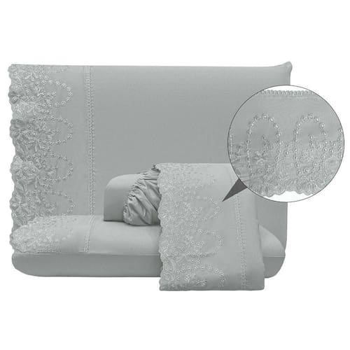 Jogo De Cama Lençol Queen Desirre 4 Peças - Cinza - 100% Poliéster