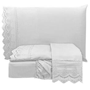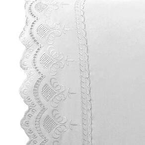 Jogo De Cama Lençol Realce Queen 4 Peças Percal 300 Fios Bordado Inglês Macio - Branco - Única