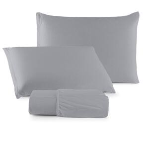 Jogo De Cama Lençol Sereno King Em Malha Algodão - Cinza - 100% Algodão