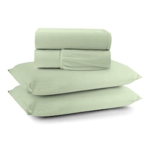 Jogo De Cama Lençol Sereno Queen Em Malha Algodão 4 Peças Verde 100% Algodão