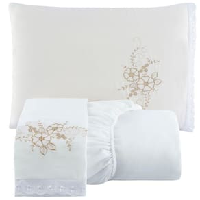 Jogo De Cama Lençol Solteiro Bordado Advance 2 Pçs - Branco