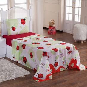 Jogo De Cama Lençol Solteiro Infantil 3 Pecas - Joaninha O Jogo De Cama Lençol Infantil 3 Pecas possui Lençol com elático liso, Lençol de cima e Fronha estampados. PRODUTO COMPOSTO POR:1 LENCOL DE CIMA....2,15M X 1,60M1 FRONHA....70CM X 50CM1 LENCOL COM ELASTICOPARA COLCHAO 1,88M X 88CM X 20CM COMPOSICAOTECIDO 100% POLIESTER