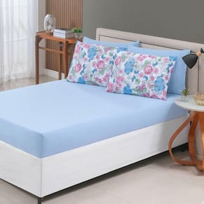 Jogo De Cama Lençol Sonho Bom Solteiro Em Malha Algodão 2 Peças Azul 100% Algodão
