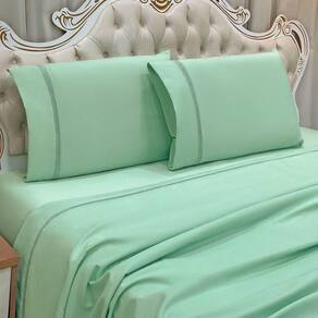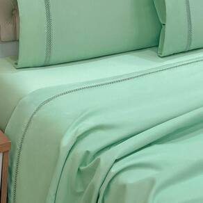 Jogo De Cama Lençol Stella King 4 Peças Percal 300 Fios Ponto Infinito Macio Verde Tiffany 100% Poliéster