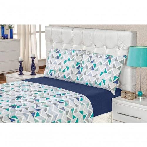 Contém um lençol de baixo com elástico, um lençol de cima e duas fronhas.