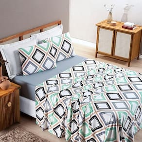 Contém um lençol de baixo com elástico, um lençol de cima e duas fronhas.