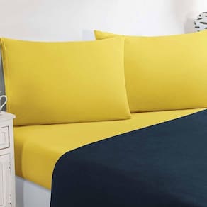 Marca: Enxovais Davy | Estampa: Não se Aplica | Medidas: 01 Lençol Casal Avulso de Cima 2,40m x 2,20m01 Lençol Casal Avulso de Baixo para Colchão 1,38m x 1,98m x 0,30m (Elástico na volta toda)02 Fronhas 70cm x 50cm | Número de Peças: 04 Peças | Material: Agodão | Cor Predominante: Azul Marinho/Amarelo | Cama Indicada: Casal