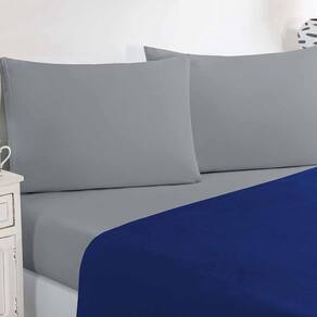 Marca: Enxovais Davy | Estampa: Não se Aplica | Medidas: 01 Lençol King size Avulso de Cima 2,50m x 2,90m01 Lençol King size Avulso de Baixo para Colchão 1,93m x 2,03m x 0,30m (Elástico na volta toda)02 Fronhas 70cm x 50cm | Número de Peças: 04 Peças | Material: Agodão | Cor Predominante: Azul Royal/Cinza | Cama Indicada: King