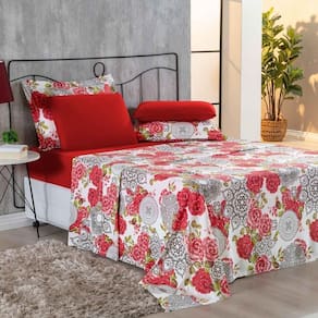 O Jogo de Cama Primavera possui o toque suave do algodão, acompanha lençol de cima, lençol de baixo e fronhas.