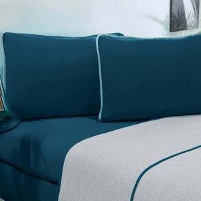 Marca: Enxovais Davy | Estampa: Não se Aplica | Medidas: 01 Lençol Casal Avulso de Cima 2,40m x 2,20m01 Lençol Casal Avulso de Baixo para Colchão 1,38m x 1,98m x 0,30m (Elástico na volta toda)02 Fronhas 70cm x 50cm | Número de Peças: 04 Peças | Material: Agodão | Cor Predominante: Azul Petroleo/Mescla | Cama Indicada: Casal