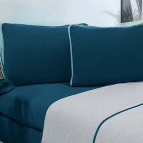 Jogo De Cama Malha Lençol 100% Algodão Urbano 4 Peças King - Azul Petroleo/mescla