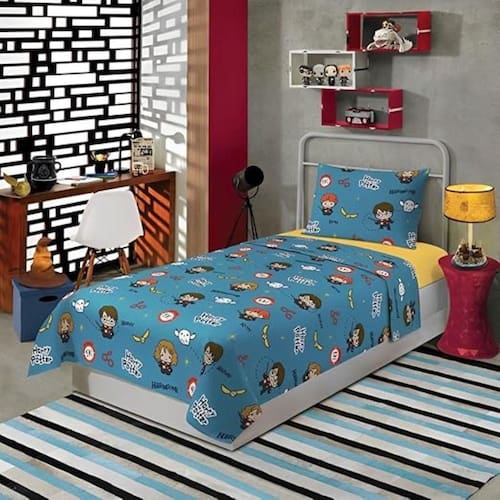 Jogo de Cama Microfibra Solteiro Harry Potter 140x220m O jogo de cama de microfibra da coleção Harry Potter é perfeito para os fãs do famoso bruxinho, destacando os corajosos protagonistas e mágicas ilustrações referenciando a saga. Seu tecido é super levinho, confortável e tem um ótimo caimento na cama. Além disso, amassa muito menos, garantindo mais praticidade para o dia a dia da família. Quando a hora de dormir se transforma em uma aventura, a diversão e o sono tranquilo das crianças são mais que garantidos. Essa é a magia dos produtos Lepper na rotina dos pequenos. Produto Oficial Licenciado - Praticidade da Microfibra: Amassa menos, tem ótimo caimento na cama e oferece durabilidade.