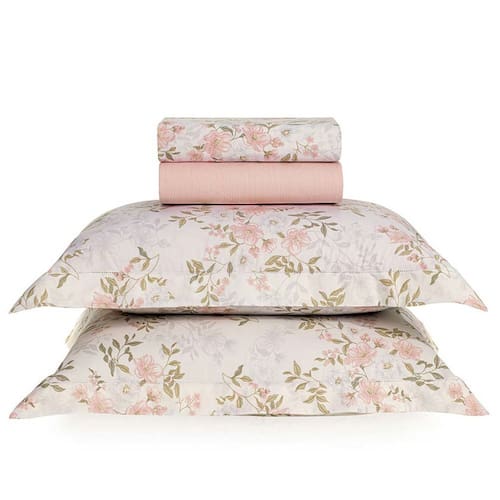 Embalagem: 1 lençol, 1 lençol com elástico e 2 fronhas