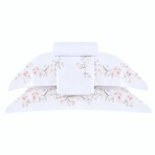 Contém: 1 lençol plano, 1 lençol com elástico e 2 fronhas