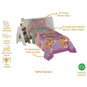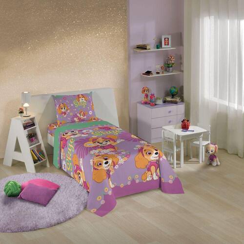 O jogo de cama da coleção Patrulha Canina ilustra a destemida e adorável cachorrinha Skye, sempre pronta para novas aventuras com sua personalidade encantadora. Ele possui o jeito Lepper, com um tecido de microfibra cheio de maciez, boa durabilidade, fácil de lavar, secagem rápida e ótimo caimento na cama, já que não amassa! A hora de dormir dos pequenos, junto de sua personagem favorita, pode ser mais alegre, mais divertida, mais Lepper!