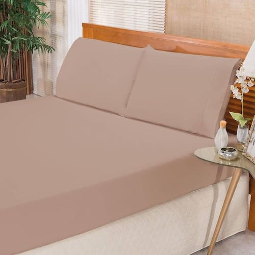 Jogo De Cama Ponto Palito Percal 180 Fios Elegance Solteiro 02 Peças - Caqui O Jogo de Cama Elegance traz conforto e suavidade para seu ambiente, é confeccionado com tecido percal 180 Fios, em tons suaves e aconchegantes. Produto composto por: 01 Lençol de baixo c/ elástico 2,50m x 1,50m p/ colchão de 1,88m x 88cm x 30cm 02 Fronha 70cm x 50cm