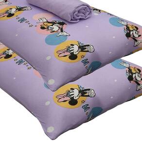 Conteúdo e Medidas: Jogo de Cama Malha Minnie Feliz - 03 Peças 01 Lençol Malha Liso Com Elástico (1,38cm x 1,88m x 30cm) 02 Fronha Malha Estampada (48cm x 68cm) (Para travesseiro até 50cm x 70cm)