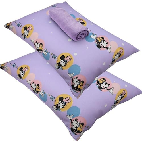 Conteúdo e Medidas: Jogo de Cama Malha Minnie Feliz - 03 Peças 01 Lençol Malha Liso Com Elástico (1,38cm x 1,88m x 30cm) 02 Fronha Malha Estampada (48cm x 68cm) (Para travesseiro até 50cm x 70cm)