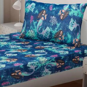 Jogo de Cama Portallar Solteiro Malha Mista Estampado Disney Ariel Mermaid 2 Pçs Azul
