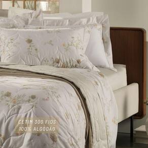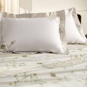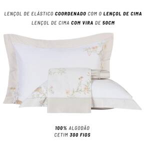 Contém: 04 Peças 01 Lençol de cima Queen 2,50x2,50m 01 Lençol de baixo Queen com Elástico 1,58x1,98m com 45cm de altura 02 Fronhas 0,50x0,70m com 04 abas de 6cm Estampa: Floraline