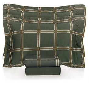 De toque supremo com experiência sensorial do cetim 300 fios, confeccionado em 100% algodão egípcio de fibras longas. Esse tecido sedoso, de toque extremamente macio e com cintilância natural, por conta do entrelaçamento dos fios; além disso, sua estrutura maleável proporciona um caimento perfeito na cama. O algodão egípcio tem propriedades hipoalergênicas e altamente respiráveis, que regulam a temperatura corporal e proporcionam uma noite de sono perfeita. Suas fibras longas impedem a formação de bolinhas e garantem fios mais finos, criando um tecido muito mais suave e confortável. Bernardo se destaca pela estampa contemporânea de presença marcante. Com um desenho geométrico formado pelo encontro de listras, com predominância da cor verde com detalhes em tom bronze. Com sobre lençol estampado com dobra feita e bainha de 3cm, lençol com elástico estampado e fronhas estampada com 3 abas de 7cm, verso tinto e cordonê bronze aplicado. Com caimento perfeito do cetim, Bernardo une a naturalidade do desenho feito à mão à sofisticação de um design único. Foto meramente ilustrativa.