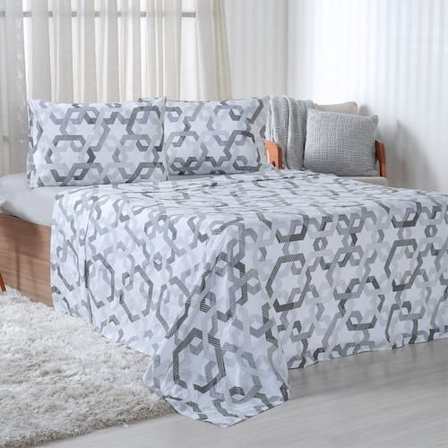 Composto por quatro peças essenciais - lençol de baixo ajustável, lençol de cima e duas fronhas - este conjunto completa a sua cama com elegância e praticidade. O lençol de baixo ajustável garante um encaixe perfeito em colchões de até 30cm, enquanto o lençol de cima amplo proporciona cobertura generosa para um conforto sem igual. As fronhas adicionam um toque final de requinte, envolvendo suas almofadas em suavidade luxuosa.