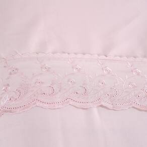 • 1 Lençol de Cima 240x250cm com Bordado Inglês 1 Lencol de Baixo 158x198x35cm 2 Fronha 50x70cm com Bordado Inglês