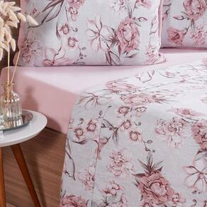 Jogo de Cama Queen 4 Pçs Malha Premium 145g/m² 100% Algodão 158x198x35cm Florescer -