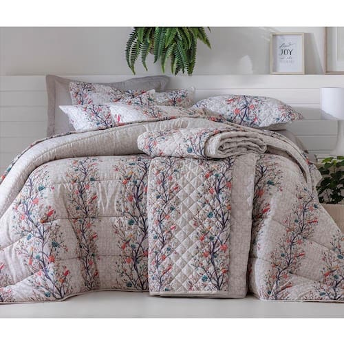 Com uma atmosfera romântica e estampas com cores alegres e vivas, esse jogo de cama duplo é confeccionado em tecido 50% algodão e 50 % poliéster com 140 fios e possui tratamento antipilling, que impede a formação de bolinhas nas peças, prolongando sua durabilidade e beleza, garantindo maciez, resistência e mais tempo de conservação do produto.