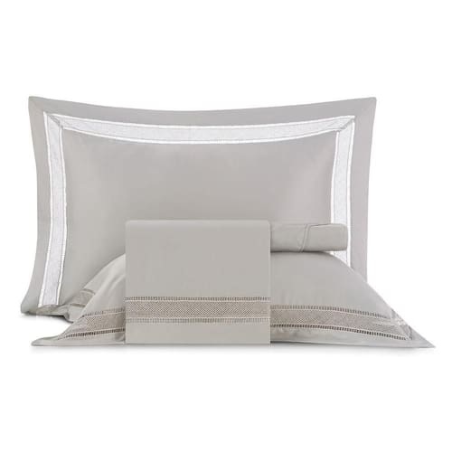 Disponível em bege, cinza e branco, este jogo acrescenta sofisticação, aconchego e elegância à decoração do seu quarto.
