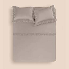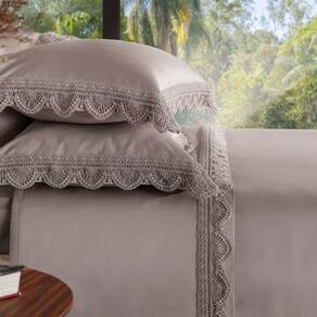 O cetim de 600 fios em puro algodão tem estrutura hiper lisa e toque refrescante. É o tipo de tecido que não gera atrito com o cabelo, muito menos com a pele, sendo também hipoalergênico. Uma fibra natural, o algodão é durável, macio e respirável. Os lençóis absorvem o calor do corpo, o que funciona como um termostato natural, mantendo frescor no verão e proteção ao frio no inverno e as fronhas não irritam a pele mais sensível do rosto. O cetim tem um brilho único que resulta em beleza incomparável.