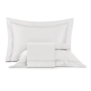 O conjunto é composto por 2 Fronhas (50cm x 70cm) com acabamento em festonê triplo nas três abas de 9cm, Lençol superior com dobra feita e aplicação de festonê triplo em U e Lençol com elástico, garantindo um ajuste perfeito ao colchão. Disponível em duas cores elegantes: branco, com sobreposição de tons, e cinza, com faixas em degradê.