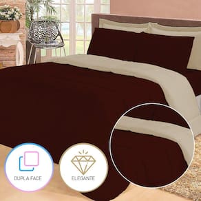 Jogo de Cama Queen com Edredom Lençol Fronha Função Cobre Leito e Cobertor - Marrom
