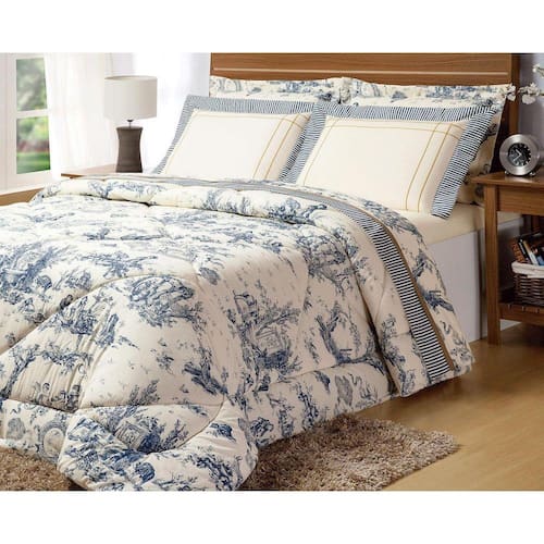 Especificações Técnicas Produto: Jogo De Cama Tamanho: Queen Modelo: Porcelana Marca: Amore Enxovais Tecido: Percal 180 Fios Material: 80% Algodão e 20% Poliéster Cor: Palha e Azul