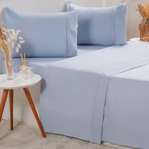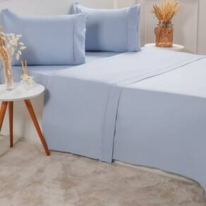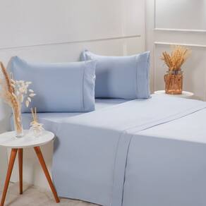 Jogo de Cama Queen Serenitá 4 Pçs Bordado Festonê 158x198x35cm Blue -