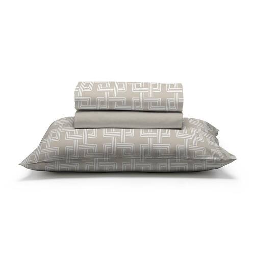 Jogo de cama com lençol inferior com elástico e lençol superior sem elástico com acabamento.